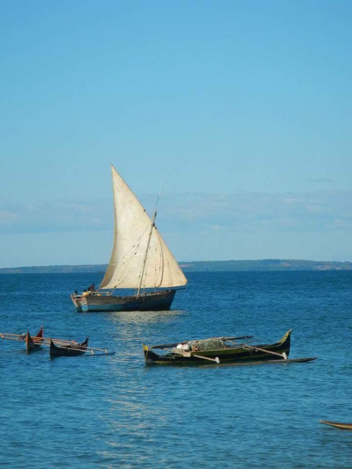 Il tutto è affollato da bancarelle di meravigliosa frutta esotica esposta qua e là e di bambini che con i loro occhioni non negano mai a nessuno enormi sorrisi. Questo paese è lontanissimo da ciò che è convenzionale ed europeo, la vita scorre tranquilla ed ogni cosa è regolata dal levarsi e dal calar del sole. La natura regna sovrana sulla vita di tutti noi. Il cinema, il teatro, le librerie sono parole e luoghi a noi ormai sconosciuti. Ma non ci mancano perché i salti delle balene, le nuvole che dipingono rossi tramonti africani, gli uccellini che, cinguettano facendoci ascoltare i loro amori, riempiono completamente le nostre giornate. La pesca è per l’isola, la maggior fonte di rendita, oltre al turismo, ed è praticata con piccole imbarcazioni, le piroghe, costruite in legno a mano, da attenti maestri “armatori”. Il fish market è direttamente in mare o sulla spiaggia e si anima al rientro delle imbarcazioni che trovano la strada di casa quando il vento da est spinge le loro vele quadre alla magione. Le donne aspettano i loro mariti sonnecchiando all’ombra di verdi palme, pronte con grandi ceste che adageranno sulla testa, per portare il bottino a casa. Nonostante il mare sia quasi l’ unica fonte di vita, molti malgasci non sanno nuotare e sono spesso convinti che il Loloranu li trascinerà sul fondo degli abissi senza che nessuno li possa salvare.