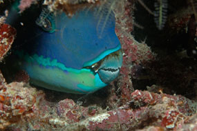 I pesci pappagallo erodono il corallo. In realtà solo poche specie si nutrono dei coralli vivi, la maggior parte si limita a rosicchiare i coralli morti sui quali crescono gustose alghe. I formidabili denti fusi in un becco dei pesci pappagallo staccano pezzettini di corallo, ma è un unico grande molare faringeo a agire da mola frantumando il materiale ingerito fino a farne sabbia finissima e a estrarne la materia organica.