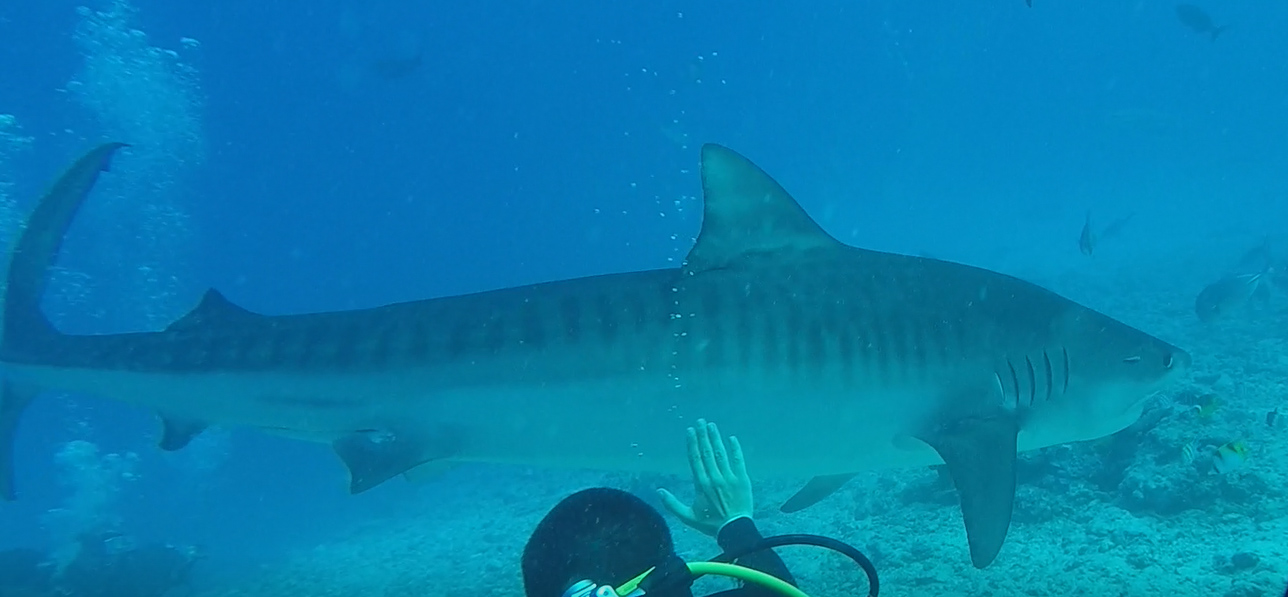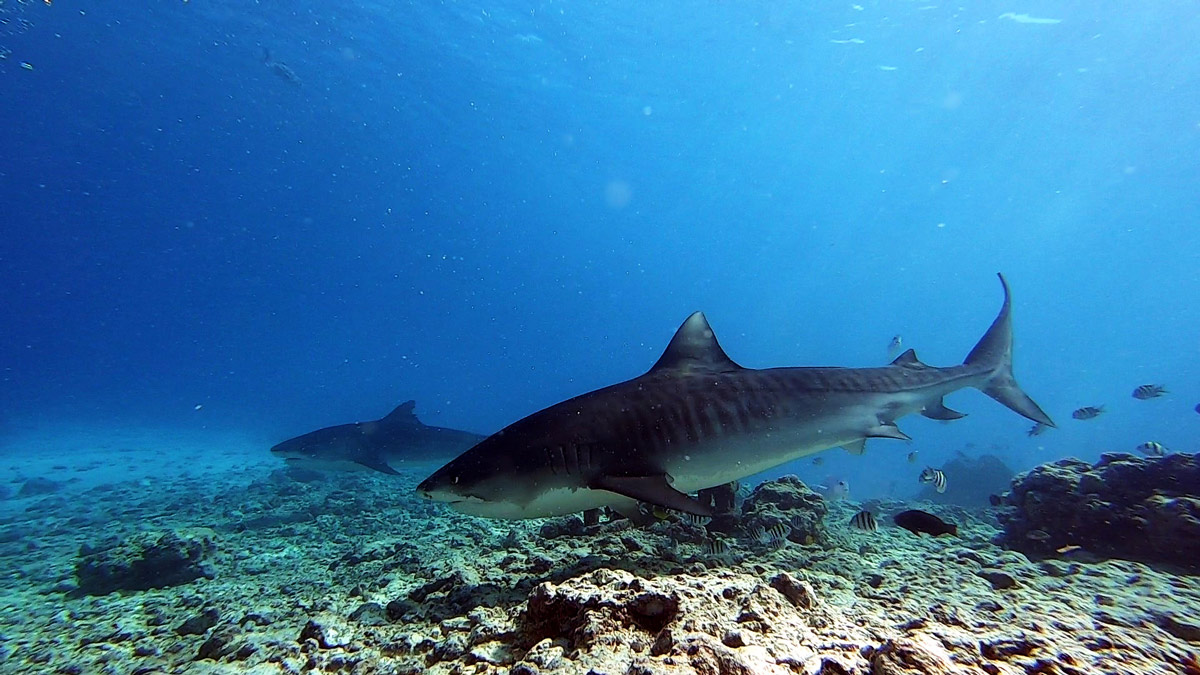 Dal 1° gennaio 2023 al 30 giugno 2024, in 18 mesi, sono stati svolti circa 18.000 minuti (300 ore) di attività subacquea nel sito di Tiger Harbour, a 7 m di profondità e con una temperatura dell’acqua sempre compresa tra 28°C e 30°C. Sono state usate action-cam per riprendere gli squali tigre, al fine di identificarli e registrarne i comportamenti sociali esibiti.