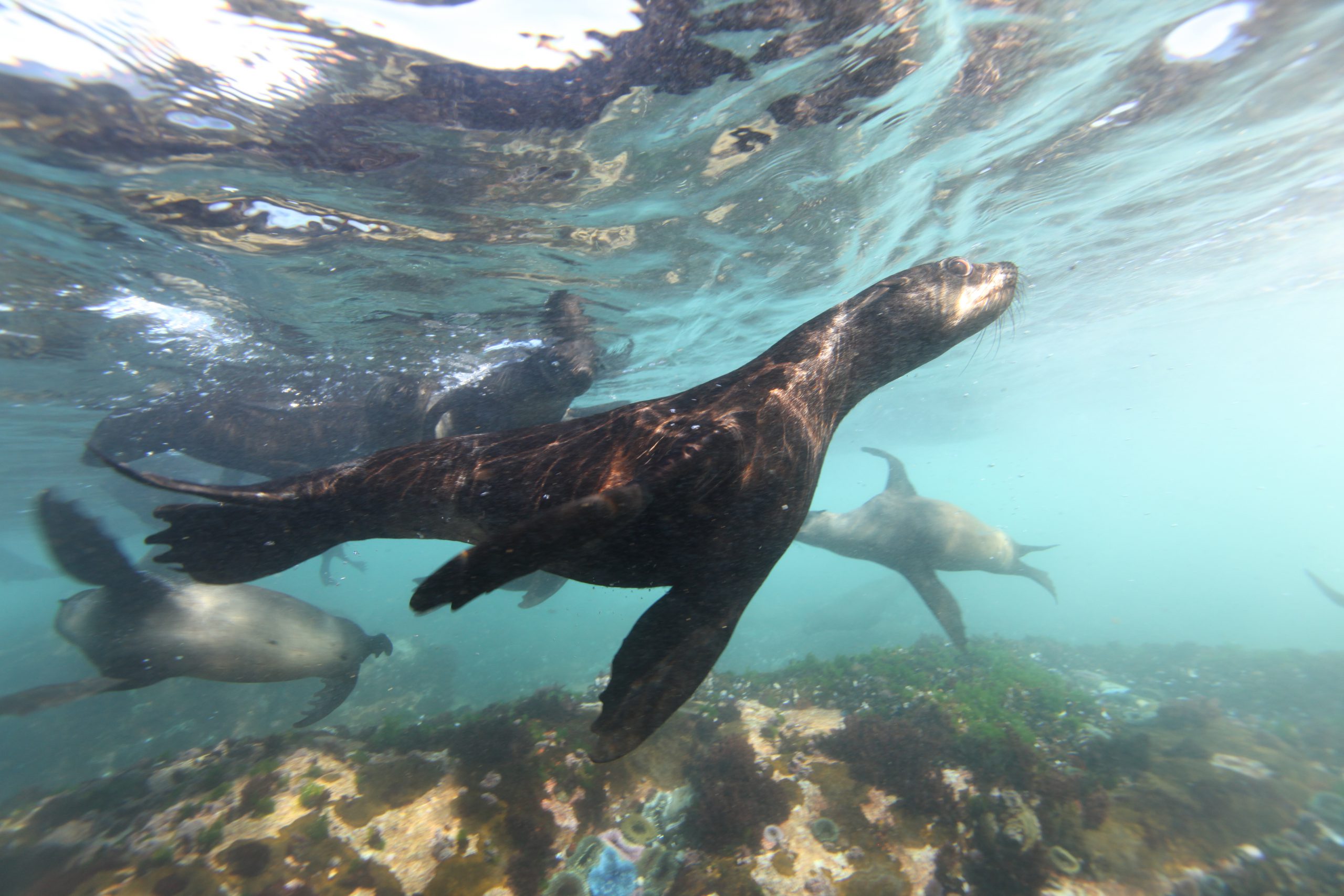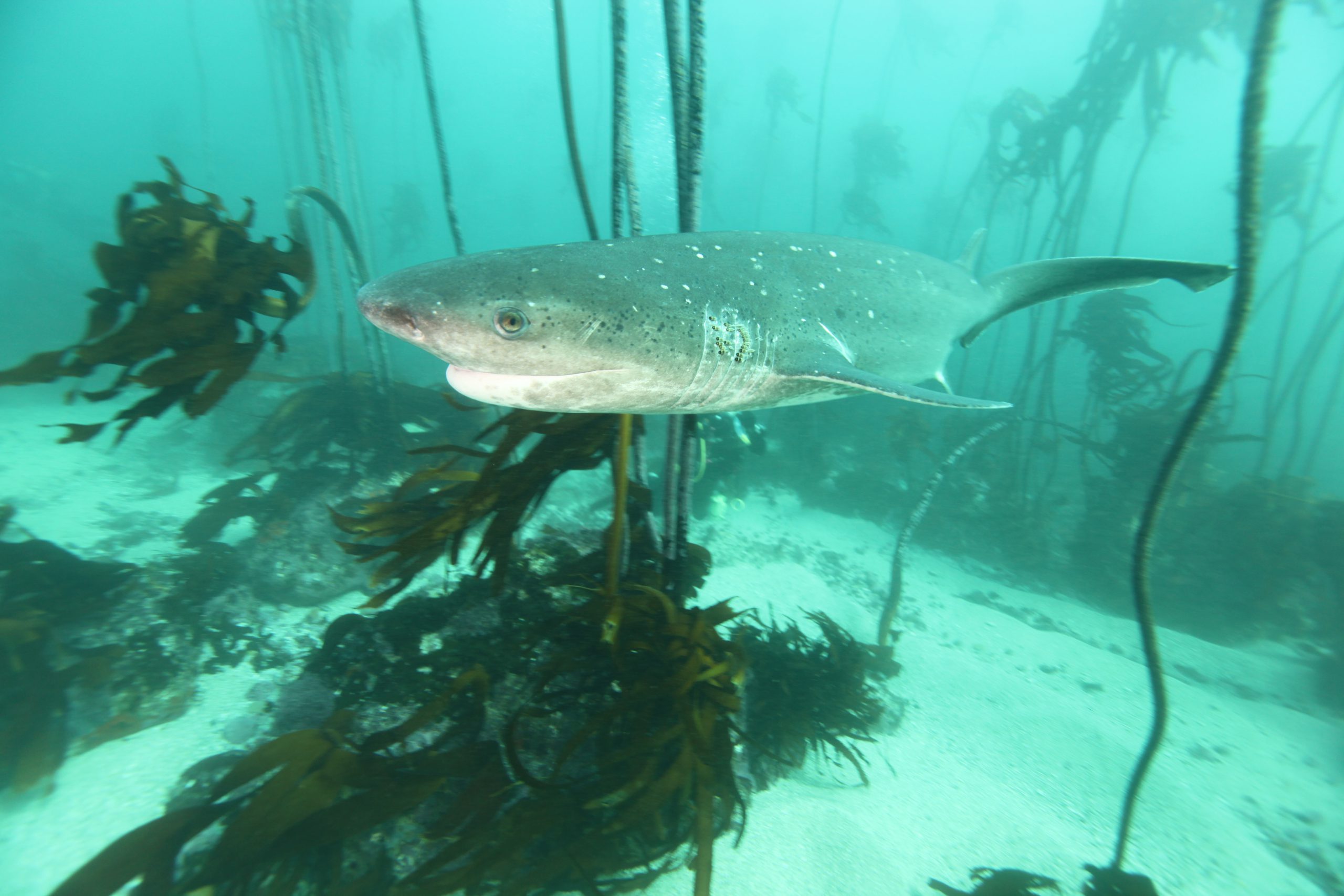 Purtroppo chi si ferma è perduto e gli squali 7 fessure branchiali: Notorhinchus cepedianus che stavano prima nelle foreste di kelp a fianco di Simon’s Town e poi a Seal Island quando avevano preso il posto degli squali bianchi sono scomparsi del tutto da 3 mesi, che dire? è stata una bellissima esperienza andare alla ricerca di questi squali lenti ed enormi con 7 fessure branchiali e 1 pinna dorsale a puntini bianchi (uno dei 4 Hexanchiformi) nelle foreste di kelp. Come ho sempre detto le occasioni vanno prese al volo… oggi si può fare ma domani non si sa…