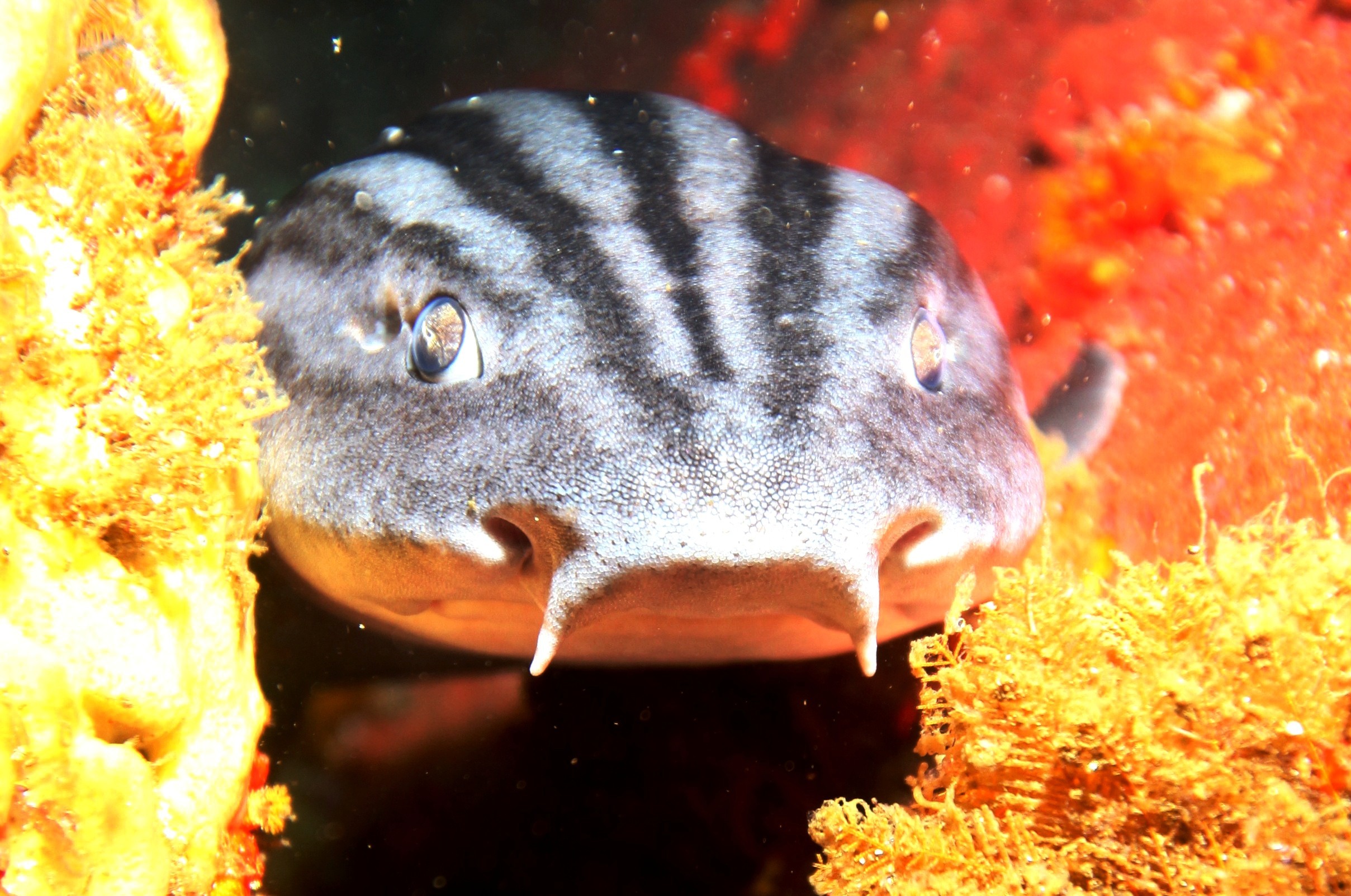 Per pranzo dovrò fare una conferenza con presentazione del nuovo corso sugli squali e relativo libro al pubblico dell’acquario con barbecue finale in onore dei 25 anni di immersioni al Two Ocean Aquarium organizzate da Shark Academy Onlus. Durante il viaggio sono previste anche immersioni diurne e notturne con le foche, pinguini, e le incredibili foreste di Kelp dove si nascondono i famosi gattucci a strisce come un pigiama Poroderma africanum, i gattucci leopardo Poroderma pantherinum e tanti altri gattucci del genere Haploblepharus e infine il gully shark o sharp tooth shark Triakis megalopterus, che per vederlo bene bisogna corrergli dietro prevedendo i suoi movimenti all’interno delle rocce.