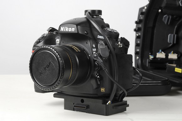La custodia che testo è per una Nikon D800 e al equipaggio con i miei vecchi e pesanti flash: un Subtronic Alpha e una Ikelite 100. Sono abituato ad avere la macchina a tracolla anche sott’acqua ma questa volta uso solo il lacciolo per tenerla ferma alla mano destra senza altre sicurezza anche se il test è fatto durante una immersione notturna con il mare un po’ mosso.