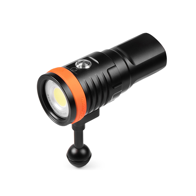 Questa versatilità per chi ha le mani impegnate nel tenere in mano una grande fotocamera è fondamentale. Con un unico illuminatore posizionato in una sfera sopra la custodia è possibile avere la luce a spot per illuminare le strette fessure tra le rocce alla ricerca di soggetti, oppure a fascio largo per favorire la messa a fuoco e scattare con facilità.
