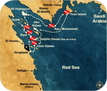 mappa tour mar rosso crociera nord