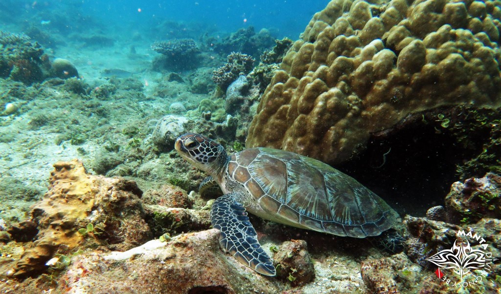 Ci sarebbero aneddoti da riempire pagine e pagine da leggere tutto di un fiato, ma niente può essere più piacevole di venire a vedere il nostro mare con i vostri occhi! Io ed il Manta Diving vi accompagneremo con gioia e passione ad ogni uscita. I sensi da dover stuzzicare durante la giornata non si fermano esclusivamente alla vista. Ogni uscita è corredata da piccole ed interessanti lezioni di biologia marina. In spiaggia per grandi e piccini viene ricomposta una tartaruga verde a dimensione naturale, con la sabbia si plasma il corpo, con le conchiglie gli occhi e le unghie, e con le foglie il carapace, così da poter osservare attentamente tutti gli aspetti fisiologici di questi cheloni ed essere pronti ad aiutare i biologi per fare un censimento della popolazione dei maschi e delle femmine viste durante lo snorkeling. E voi sapete come si fa a vedere la differenza? La particolarità è che possiamo riconoscere un maschio da una femmina solo in individui adulti, raggiunta la maturità sessuale, intorno ai 20-25 anni di età. Grazie al comparire di una lunga coda che fuoriesce dal carapace e delle unghie arcuate che usano nel momento dell’accoppiamento, possiamo identificare i maschi ed invece in presenza di una piccola coda, timida e nascosta,ci troveremo in compagnia di una femmina. Le Chelonia Mydas, che stazionano davanti le coste di Nosy Sakatia, nutrendosi quotidianamente di fanerogame marine che lì crescono a iosa, sono le uniche delle sette specie di tartarughe marine ad essere vegetariane ed ad essere chiamate tartarughe verdi proprio per il colorito verdastro che viene assunto dalla loro pelle, grazie alle piante di cui si nutrono. Questi cheloni vivono dai tempi dei dinosauri e non hanno cambiato quasi nulla del loro aspetto e della loro biologia. Nonostante respirino, tramite i polmoni, quindi aria, le possiamo trovare per molte ore, fino a quattro, sott’acqua. Grazie ai loro adattamenti perfetti alla vita acquatica, questi rettili, compiono delle lunghe apnee ma nonostante ciò, una breve fase della loro vita è ancora sulla terra ferma: la deposizione delle uova.