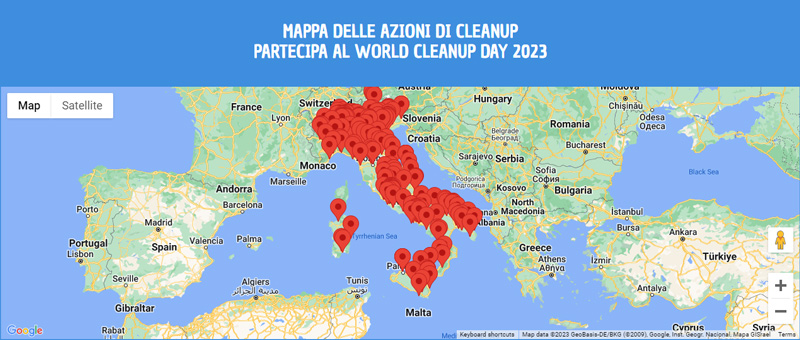 Mappa delle azioni di pulizia del world cleanup day 2023