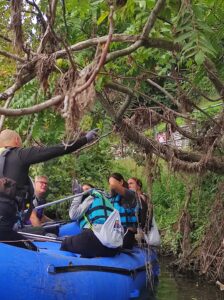 Successivamente, il team incontra uno dei gommoni provenienti da Lanzo, che hanno esplorato il fiume in anticipo. I navigatori mostrano sacchetti pieni di rifiuti e segnalano altri rifiuti intrappolati sui rami più bassi degli alberi. La quantità di spazzatura sembra essere rimasta sostanzialmente la stessa, se non addirittura aumentata, ma ora è frammentata e in parte integrata nell’ambiente fluviale, grazie alla piena primaverile.