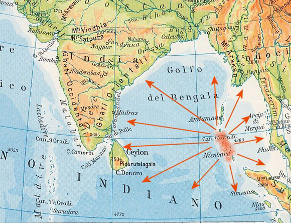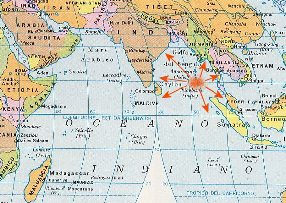 Il 26 dicembre infatti un terremoto con epicentro a nord-ovest dell’isola di Sumatra, nei fondali dell’Oceano Indiano, libera una energia pari a quella che si avrebbe con l’ esplosione di 20000 bombe atomiche..