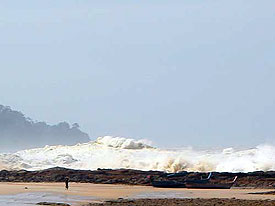 Prima che le onde si abbattano sulla costa c’è una forte risacca, il mare si ritira per decine di metri e questo è il segnale che l’acqua sta per invadere la costa..