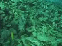 (Immagini della barriera corallina colpita dallo tsunami, con ventagli e coralli ramificati spezzati)