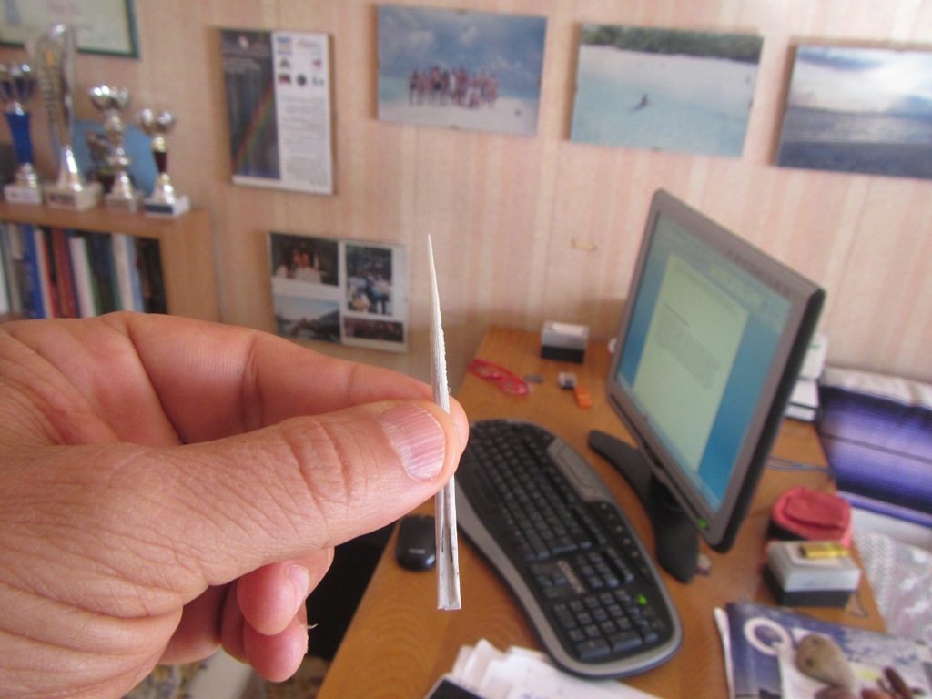 2 Aculeo di trigone: I trigoni sono pesci simili alle razze e provvisti di uno o più aculei sulla coda, capaci di iniettare un potente veleno. Lo utilizzano però molto raramente e solo per difendersi (l’aculeo era di un trigone abbandonato sulla spiaggia dai pescatori).
