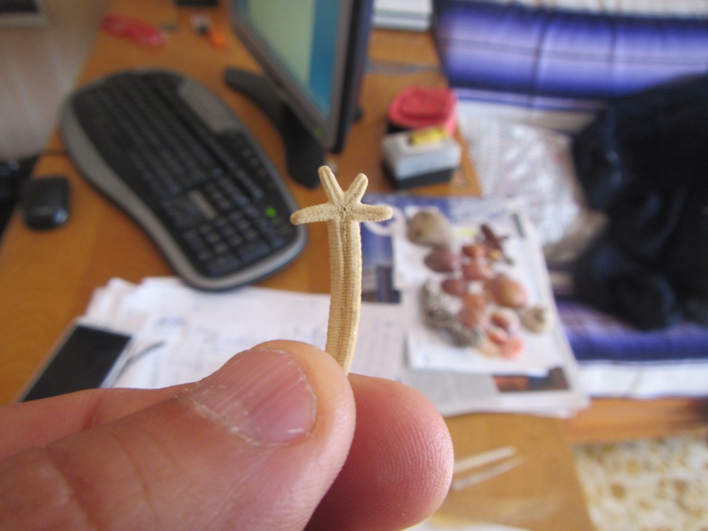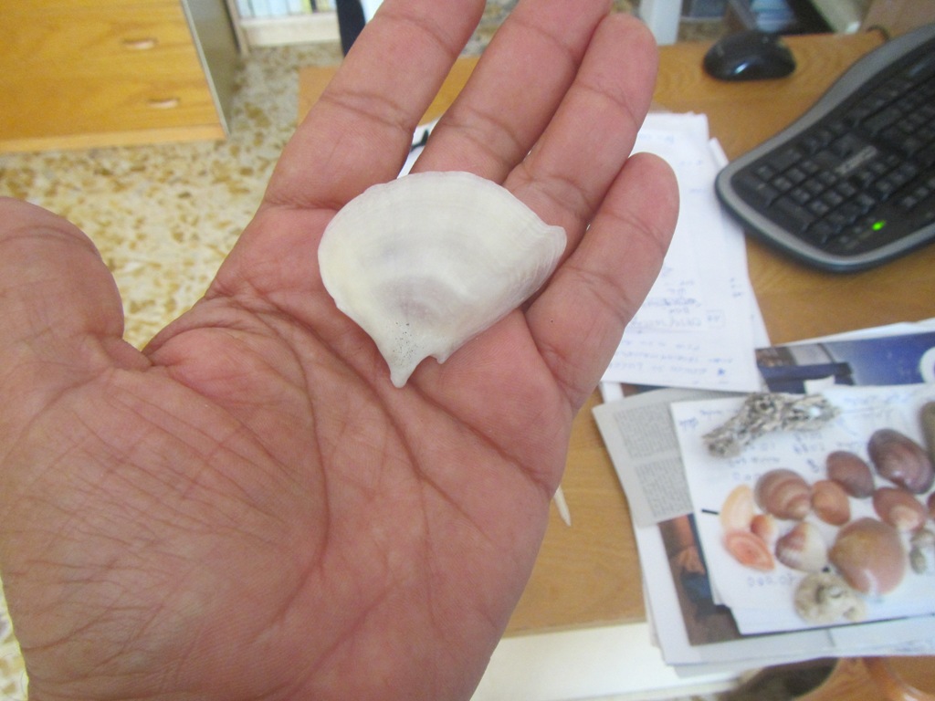 3 Dollaro di sabbia: Questo gioiello della natura l’ho trovato sulla spiaggia dell’Havana, a Cuba. Si tratta del guscio di un riccio “irregolare” che, a differenza di quelli “regolari”, vive nella sabbia e ha una forma appiattita (nel nostro mare hanno una forma a cuore). Sul dorso presenta un disegno a forma di fiore con 5 petali. Chiaramente, mancano gli aculei che in queste specie sono sottili e molto numerosi.