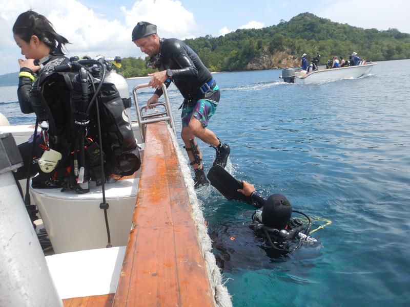 Rinvigoriti dal pranzo e da un po’ di riposo, i sub si preparano per la terza immersione della giornata. I siti d’immersione pomeridiani offrono spesso opportunità di fotografia macro, con cavallucci marini pigmei, nudibranchi e altre meraviglie marine di piccole dimensioni come protagonisti. Altre volte, gli ospiti esplorano magnifici reef corallini ricchi di banchi di pesci.