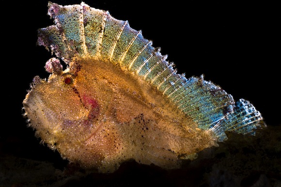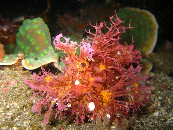 Uno splendido esemplare di scorfano foglia immortalato durante una’immersione notturna (@Rodger Klein)