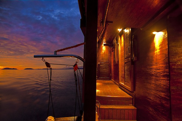 Un magnifico tramonto a sugello di uno dei piu’ incredibili itinerari diving indonesiani a bordo di una barca dal fascino indiscusso (@Rodger Klein)