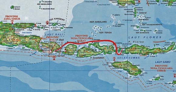 La rotta della crociera Labuanbajo-Bali ( www.thearenui.com )