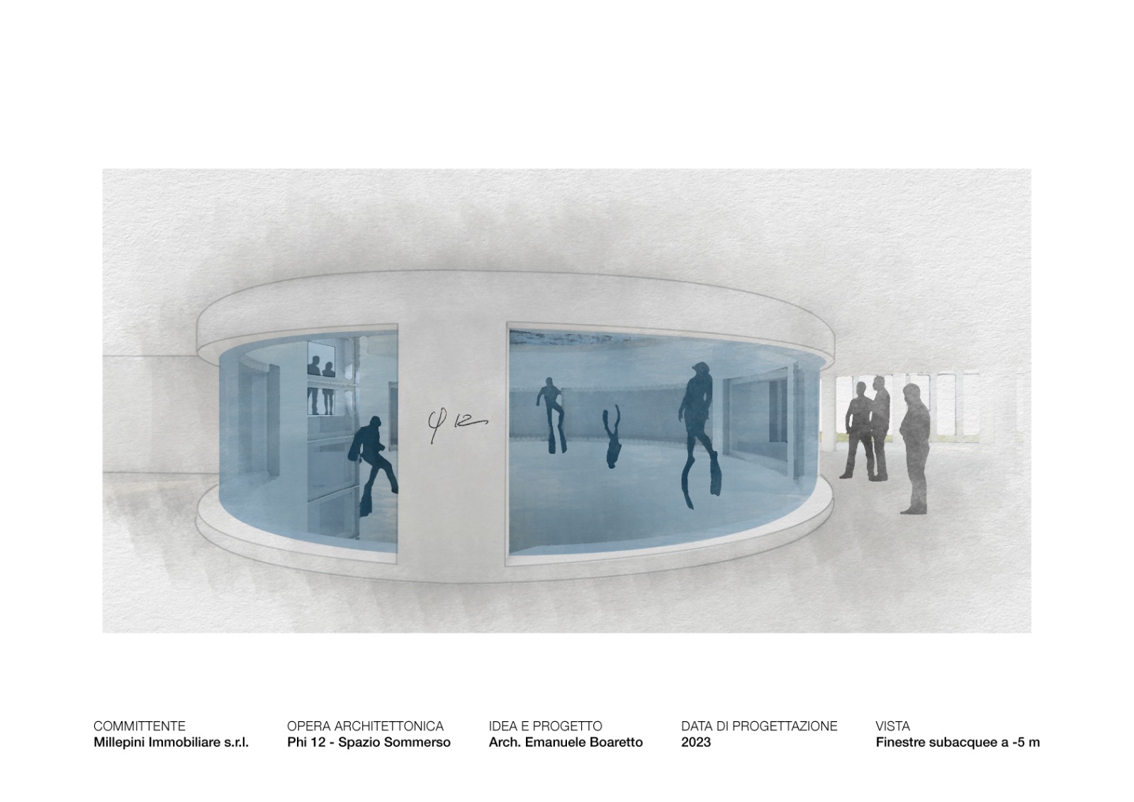 “Se con Y-40 abbiamo vinto la scommessa di creare un punto di riferimento per l’architettura subacquea, che ha vantato anche eccellenti tentativi di imitazione standardizzando l’idoneità della piscina, – chiosa l’architetto Boaretto, – è ora tempo di dare un’opportunità nuova, che cambia secondo lo stile di vita delle persone per efficientamento e versatilità, con un obiettivo urbanistico socialmente utile. Un progetto architettonico è sempre un luogo della memoria, di un passato portante storia e cultura, che si fa visione e, quindi, apertura verso il futuro. PHI 12 SARÀ UN’OPERA APERTA IN GRADO DI ISPIRARE”.